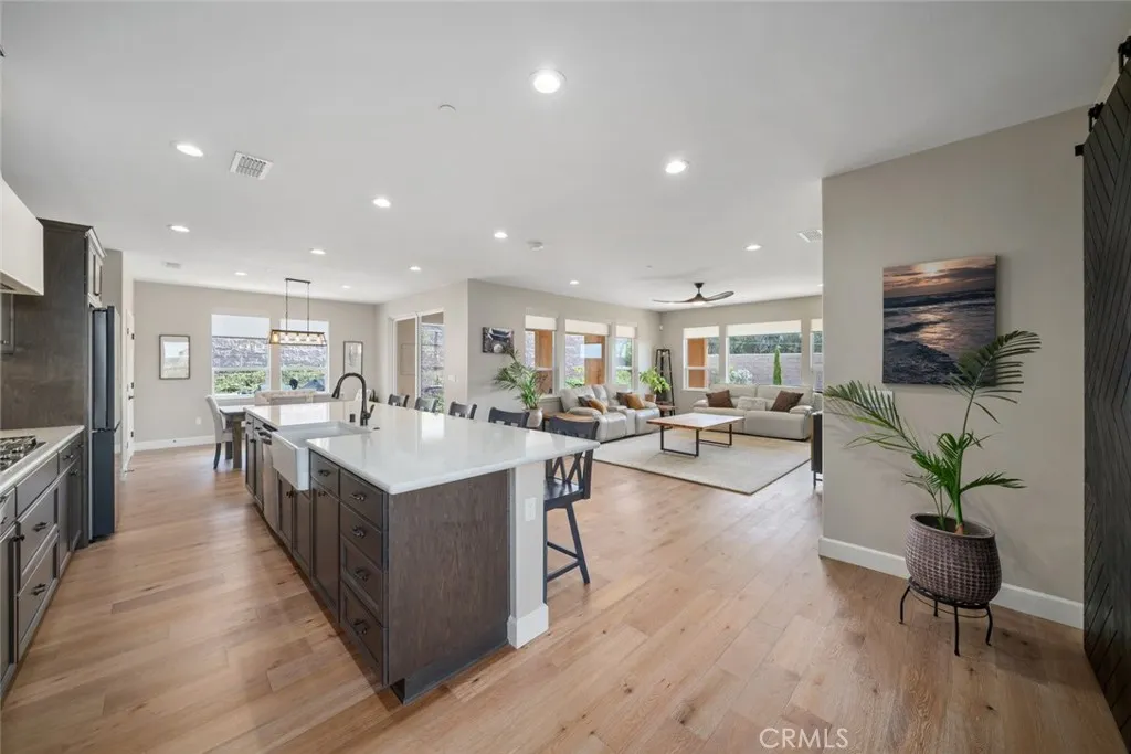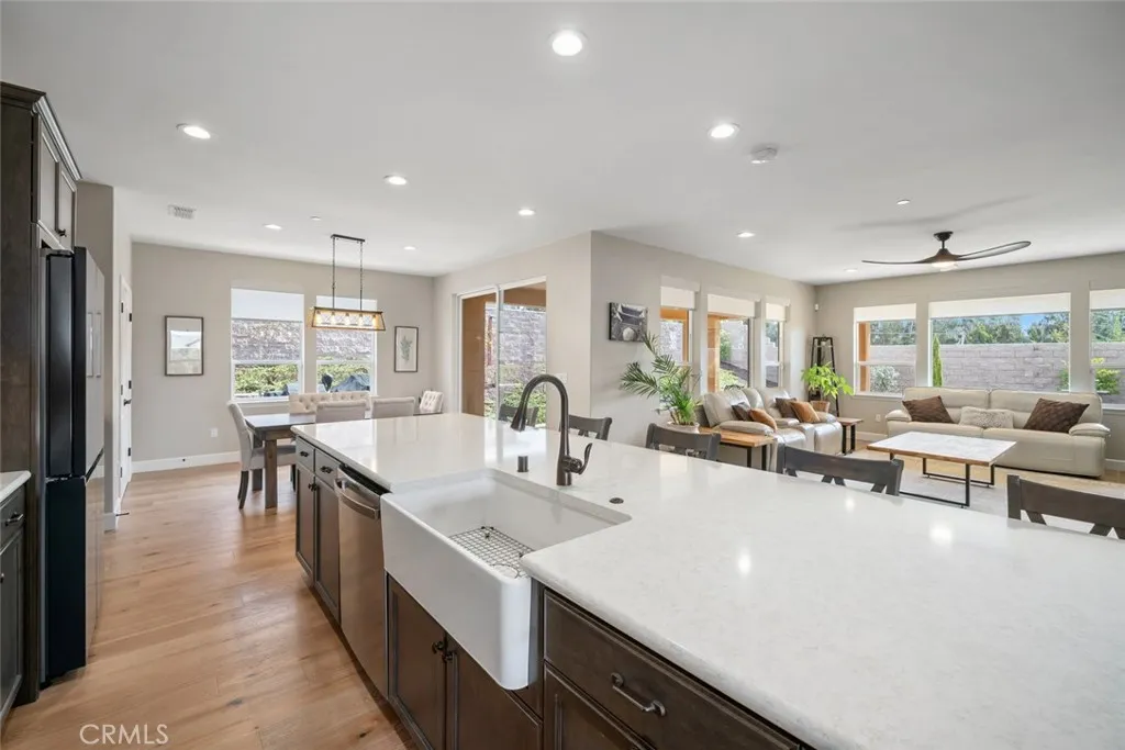 Located in the prestigious Trilogy at Monarch Dunes resort community, this thoughtfully designed newest Monterey III model offers refined coastal living with exceptional privacy and timeless style. Featuring engineered hardwood and tile flooring throughout, this single-level home blends sophistication with everyday comfort. The open-concept layout includes a designer kitchen with quartz countertops, premium appliances, walk-in pantry and a spacious island that flows into the great room and dining area - ideal for entertaining. The primary suite features a spa-inspired bath and walk-in closet, while a versatile flex room and a custom laundry-office combo add practical functionality. Step outside to a private backyard oasis with no rear neighbors, professionally landscaped for serene outdoor enjoyment. Additional highlights include a solar system, covered patio, 2-car garage with dedicated workshop space, and smart, energy efficient, modern conveniences designed for effortless living. Residents of Trilogy enjoy access to championship golf, tennis, pickleball, fitness centers, indoor/outdoor pools, fine dining, and a calendar of curated social events. Whether you're seeking a full-time residence or a weekend retreat, this home offers tranquility, elegance, and an elevated lifestyle.