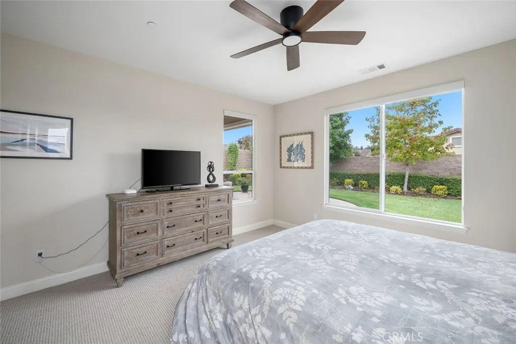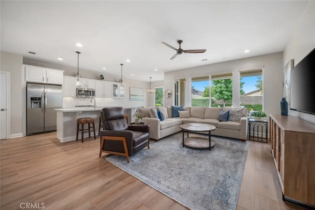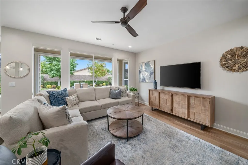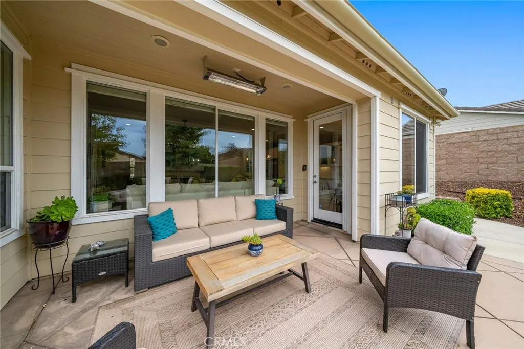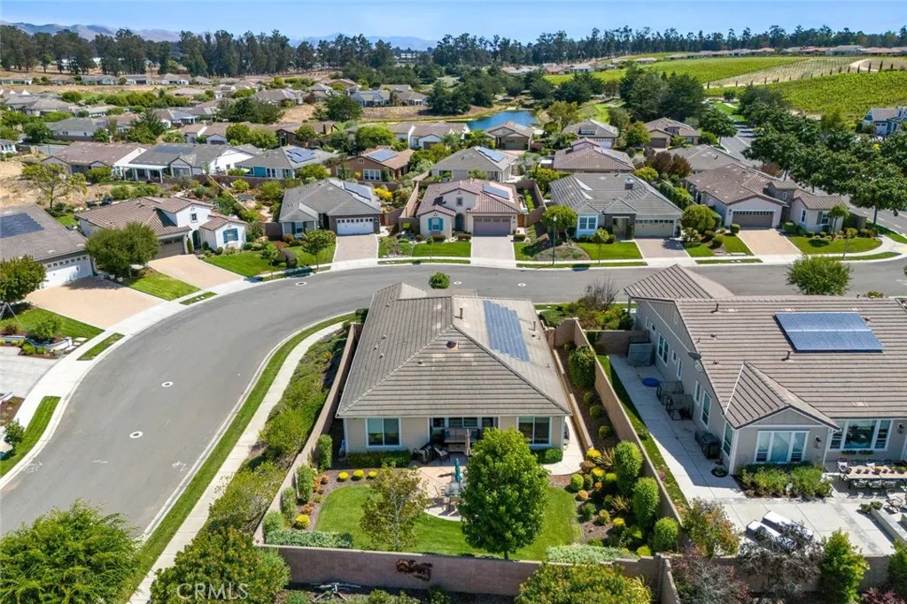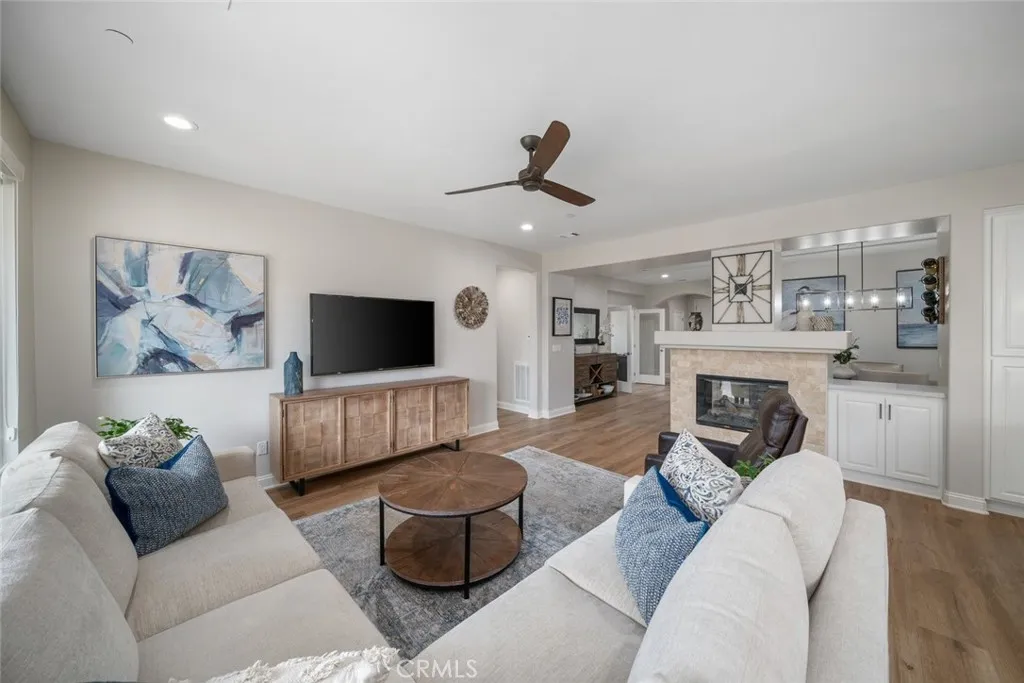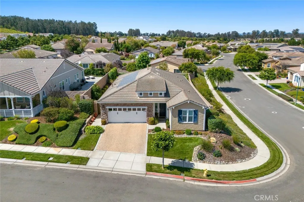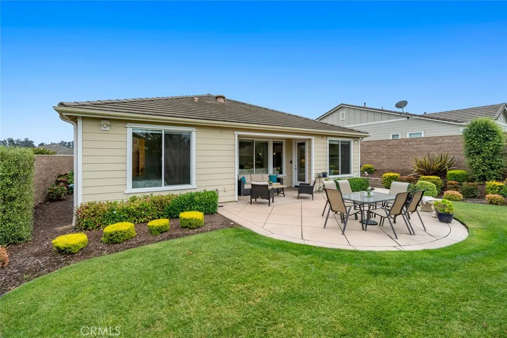 Welcome to this beautifully upgraded home in Trilogy at Monarch Dunes, a premier active lifestyle community on the Central Coast. Perfectly situated on a quiet cul-de-sac corner lot, this residence offers privacy, convenience, and timeless charm. Step inside to discover an inviting floor plan with luxury vinyl plank flooring, bright white cabinetry, and quartz countertops. The spacious kitchen features a pantry and a charming buffet nook - ideal for a coffee bar or extra serving space. The home includes 2 bedrooms plus a den, giving you flexible options for an office, hobby room, or guest space. A dual-sided fireplace warms both the den and family room, creating a cozy atmosphere for gatherings or quiet evenings. Outdoor living is a breeze with a covered patio featuring an overhead heater, perfect for year-round enjoyment. The private backyard retreat provides plenty of space for entertaining or relaxing. Additional highlights include owned solar panels for energy efficiency and the convenience of a move-in ready condition. As part of Trilogy at Monarch Dunes, residents enjoy access to world-class amenities including a clubhouse, fitness center, pools, spa, golf, dining, and endless opportunities for connection in this vibrant community.