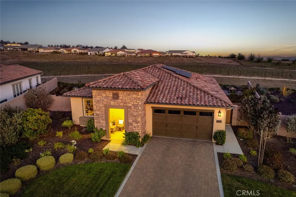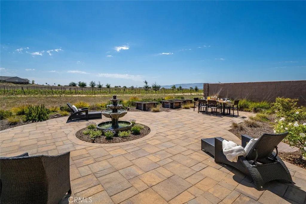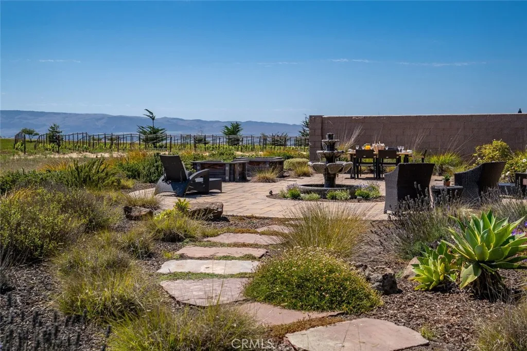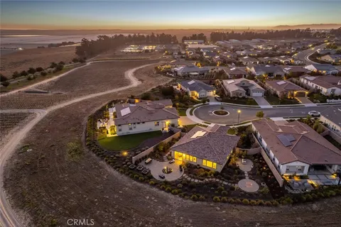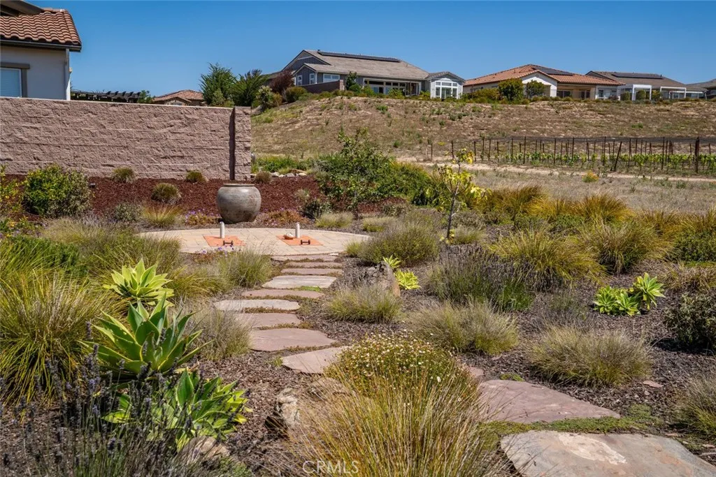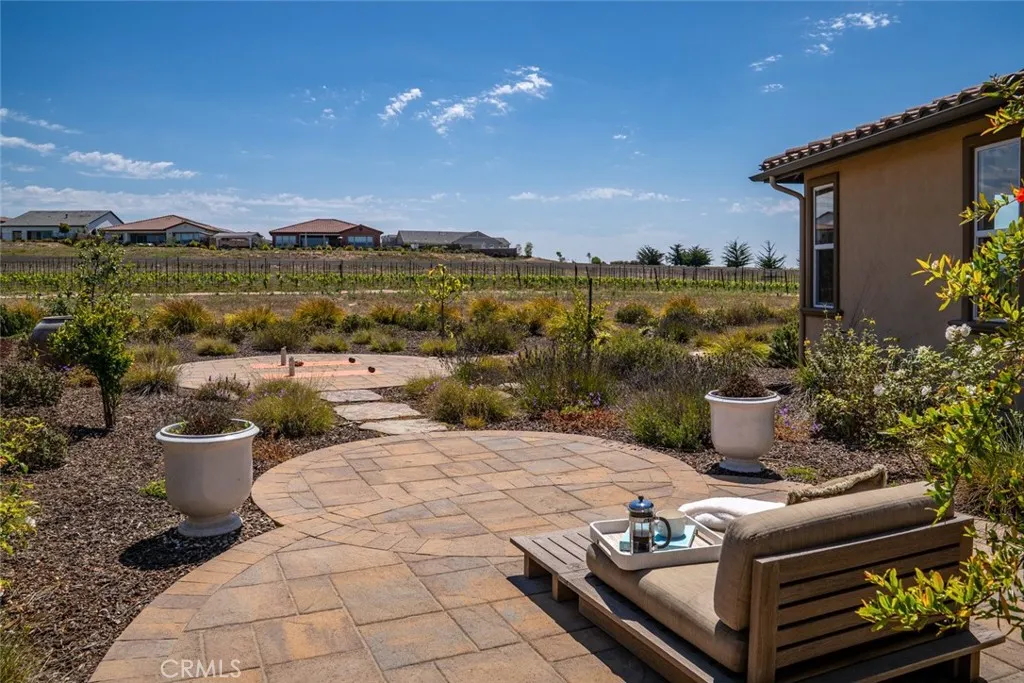 Step into unparalleled elegance with this single-level Solvang model, perched on a premium almost 11,000sf vineyard and mountain view lot in Trilogy at Monarch Dunes. Nestled at the end of a quiet cul-de-sac, this 2-bedroom plus office, 2-bathroom SOLAR and SMART home exudes the effortless sophistication of a model home, with tile floors, neutral palettes, & abundant natural light. The award-winning floor plan centers around a spacious great room with soaring ceilings, seamlessly connecting to a stunning kitchen featuring a custom waterfall-edge island, quartz countertops, top-tier GE Profile appliances, reverse osmosis system plumbed into fridge & spigot, five-burner gas stove, and stained maple soft-close cabinetry with pull-out drawers. A large pantry & oversized laundry room with desk and ample storage add both function and style. The primary suite is a serene retreat, offering breathtaking vineyard and mountain views, high ceilings, a spa-like bath with dual sinks, quartz countertops, walk-in shower with bench and decorative tile, & an expansive walk-in closet. The guest wing includes a corner bedroom with two large windows, a bath with soaking tub/shower combo, and an office , perfect for work, study or even a 3rd bedroom! Designed for modern living, this smart home features sophisticated automation: lighting with dimmers, thermostat, solar, water heater, appliances, remote entry, and voice activation via Alexa and Siri, along with Ring, MyQ, Rachio irrigation, internet booster for outdoor WIFI coverage, smart HQ, and programmable outdoor lighting/fountain. Step outside to your private resort: four distinct patios for alfresco dining, sun lounging, yoga, or morning reading, surrounded by lush, low-maintenance landscaping with beautiful fountain setting a peaceful tone with rose and veggie gardens, five fruit trees, and panoramic vineyard and mountain vistas. Stone accents, paver driveway, and southern exposure complete the idyllic setting. Live the Trilogy lifestyle with championship golf, fine dining, luxury spa, state-of-the-art fitness, and endless social opportunities. Relax in the expansive backyard and enjoy sweeping views of wildflower meadows and even NASA and SpaceX launches from Vandenberg. Golf course community with all the amenities right at your fingertips & just five miles from Oso Flaco Lake State Park dunes and beaches. Exceptional design, luxury, and technology converge to create a home that's more than a residence - it's a lifestyle.