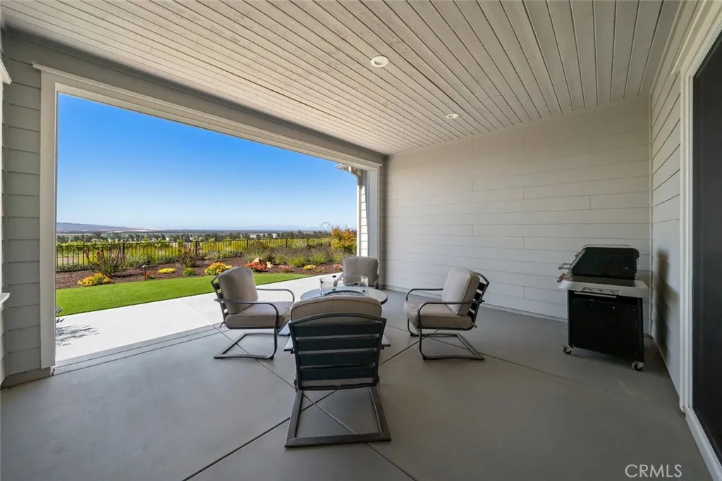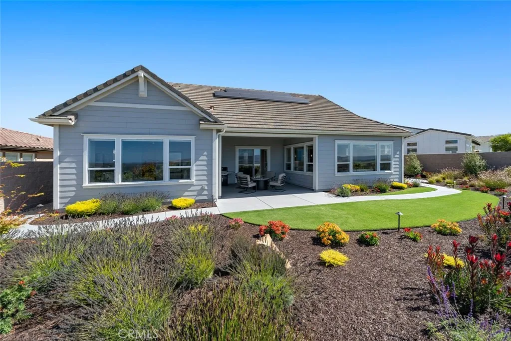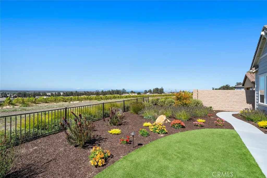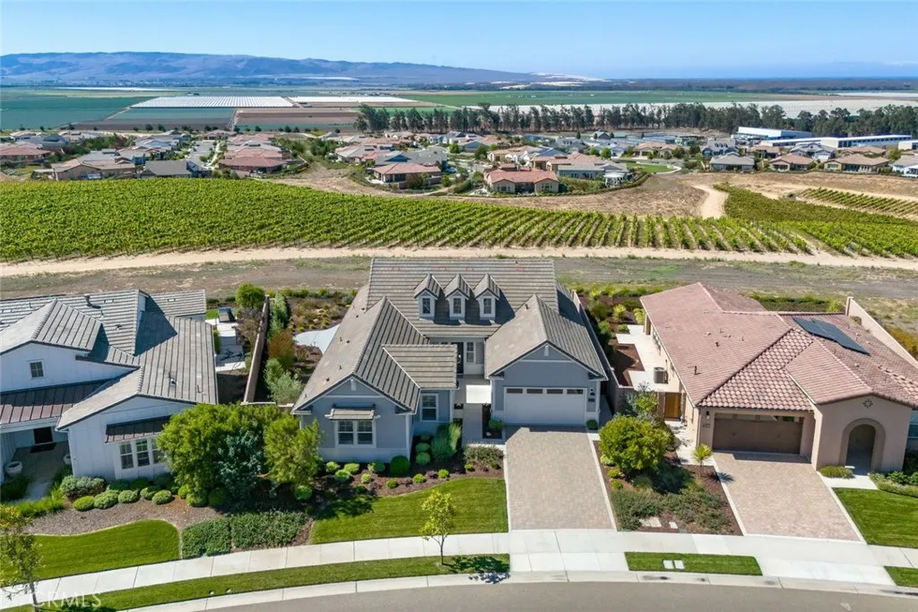 Here's your opportunity to own a beautiful coastal exterior Ventana home, located on a super premium lot with a panoramic view of vineyards and hills to the south, plus the ocean and dunes to the west - it's simply breathtaking! This gorgeous solar home offers 2,517 sq. ft. of prime living space with 3 bedrooms, 3.5 baths, (which includes a guest wing with private entrance), plus a den. Step inside and discover a stunning open-concept kitchen/great room/dining area with natural plank engineered wood floors and incredible views, which surround the outdoor space, lending itself to seamless indoor/outdoor living. You'll love the centrally-located culinary kitchen with soft ivory colored quartz countertops and island combined with rich, upgraded espresso Shaker-style cabinetry - it's an inviting combo that continues throughout. Top it off with the latest flush-mounted GE Profile stainless appliances, including a 5-burner gas cooktop, white tile backsplash, brushed nickel fixtures, and a spacious walk-in pantry - large parties or small gatherings, this space can handle it with ease. Outside, the landscaping is impeccable with covered patio, meandering pathways, low-maintenance plants and shrubs, artificial turf and ambient lighting - all with incredible views in every direction. The versatility of this home continues when you host family and friends for overnight stays, you'll have plenty of room with a large bedroom and full bath next door, plus a guest suite, (living room, bedroom and full bathroom) with its own private entrance. Once your guests are comfortably tucked away, head to your primary suite, a personal retreat, featuring a spacious bedroom with an inviting window seat and a luxurious spa-like bath with tile floors, beautiful tile shower with seamless glass enclosure, Roman tub, dual sinks, walk-in closet and linen storage - it's a slice of paradise you'll enjoy every day! Taking care of business is also a breeze with the oversized SmartSpace and laundry with desk, storage cabinets, countertops and sink - it's the perfect spot to catch up on email or jump on a zoom call. Additionally, there's a den with French door enclosure, powder room, 2-car garage with showroom epoxy floors, A/C and plantation shutters where needed. You'll never want to leave this magnificent home, but when you do, you'll be amazed at all the activities Trilogy life has to offer.