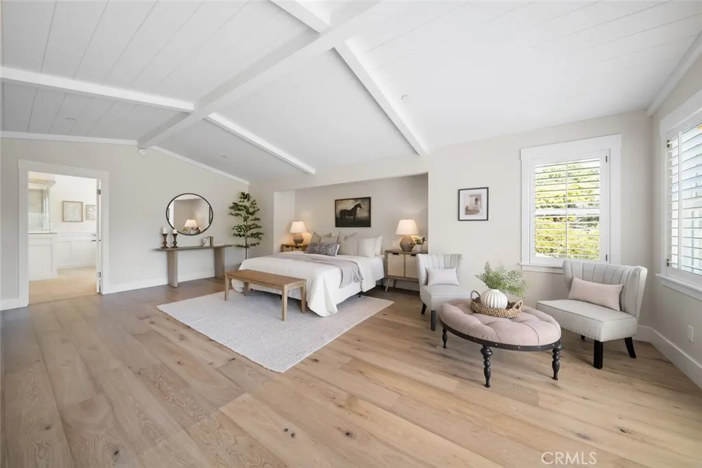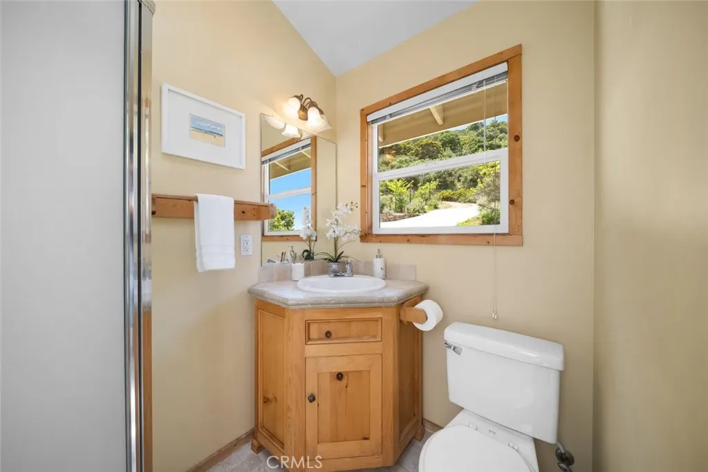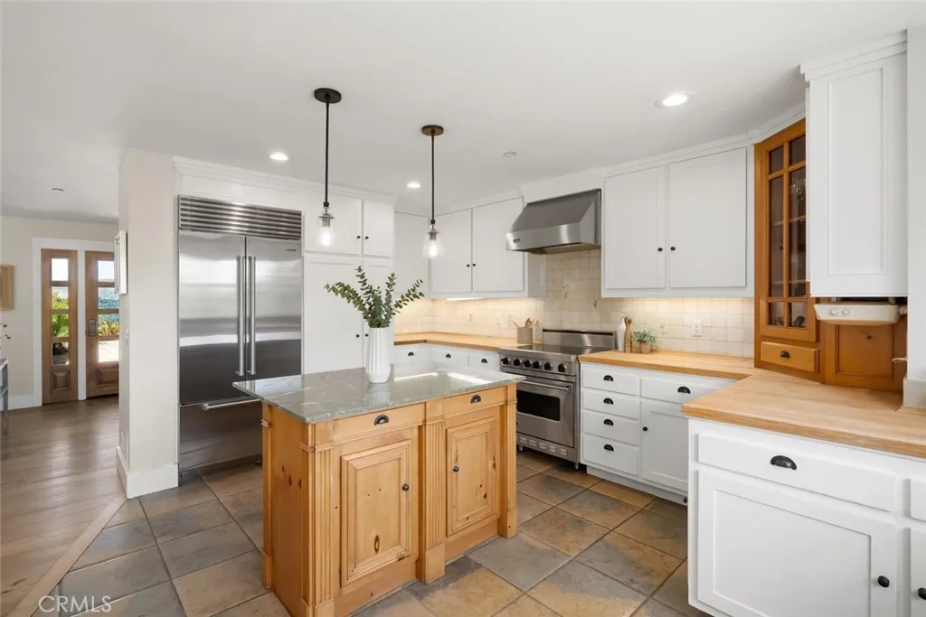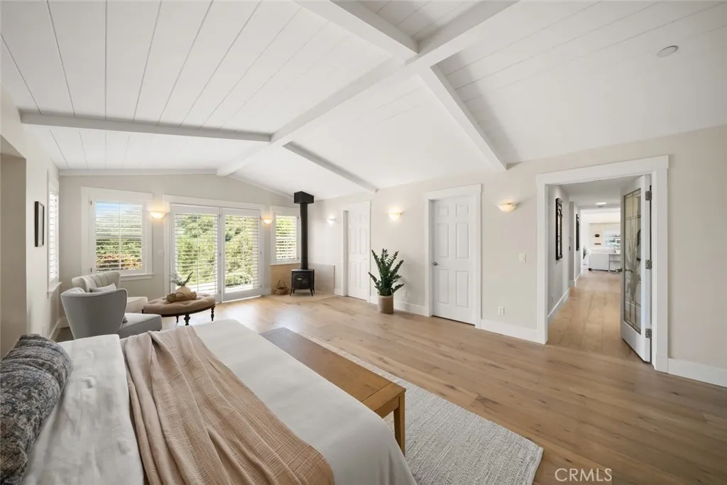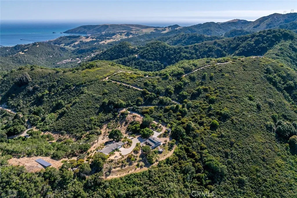 Welcome to your private retreat in the sought-after See Canyon region of San Luis Obispo. Perched atop a scenic hillside, this exquisite single-level estate offers stunning panoramic views of the hills and Pacific Ocean. Designed for seamless indoor-outdoor living, the home blends timeless charm with modern comforts, perfect for those who cherish serenity, space, and natural beauty. Vaulted ceilings and large windows create an open, airy atmosphere in the great room, where hillside and ocean views surround a wood-burning fireplace. The gourmet kitchen features a center island, marble and butcher-block countertops, a farmhouse sink, Fisher-Paykel dish drawers, Sub-Zero refrigerator, Viking range, wine storage, and a breakfast nook with built-in seating. The luxurious primary suite boasts vaulted tongue-and-groove ceilings, a sitting area with a freestanding stove, king-size sleeping nook, a large walk-through closet, and a bathroom with a jetted tub, dual vanities, and travertine tile steam shower. Two spacious guest bedrooms with hillside views and built-ins share a hallway bathroom with a clawfoot tub and custom vanity. Exceptional craftsmanship is evident throughout with wide-plank oak floors, skylights, recessed lighting, and a tasteful blend of classic and contemporary finishes. A detached guest house offers vaulted ceilings, skylights, abundant natural light, a kitchen with concrete countertops and high-end appliances, two bedrooms or flex spaces, a bathroom, loft, and built-in office setups; with a separate entrance for privacy. The outdoor oasis features an expansive patio with a built-in fire pit, an outdoor kitchen with a Viking BBQ, sink, and wind-protected counter space, plus a hot tub with an outdoor shower. An enclosed garden includes raised beds, a chicken coop, water feature, and rose bushes. The orchard has fruit trees including Meyer lemon, avocado, plum, pear, pomegranate, and more. Additional amenities include walking and hiking trails, a dog run, mature landscaping, and a solar power system. The oversized two-car garage includes two Tesla Powerwalls and a built-in workbench. Two detached sheds offer versatile space. A private well and water purification system for the main residence enhance the property's features. This exceptional property perfectly balances luxury, comfort, sustainability, and breathtaking natural beauty. Whether entertaining, relaxing, or exploring your private trails, this is California coastal living at its finest.