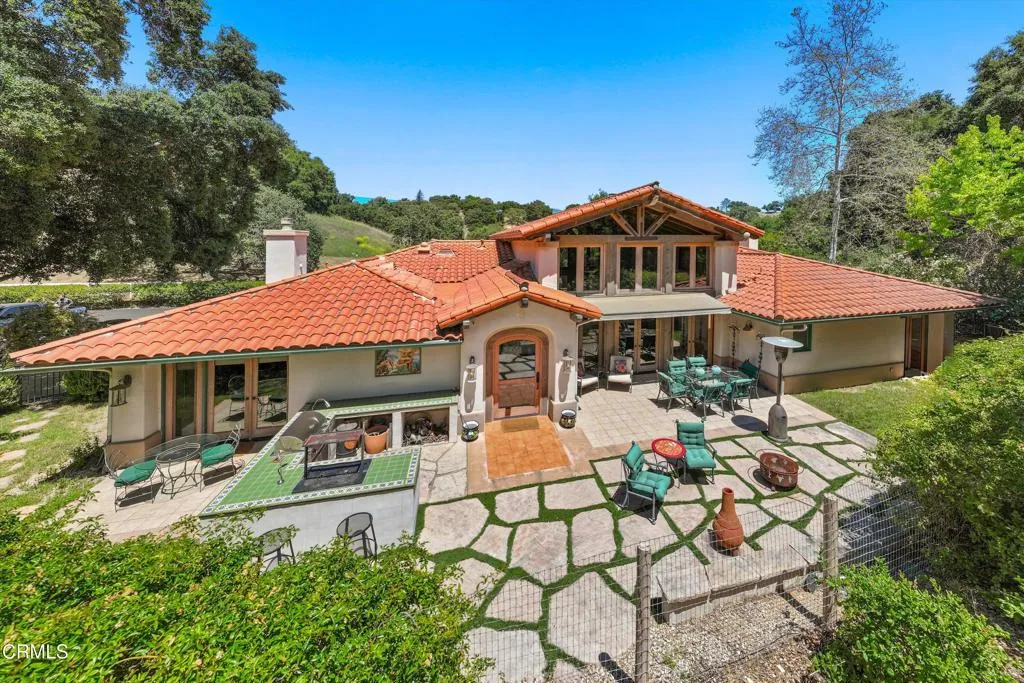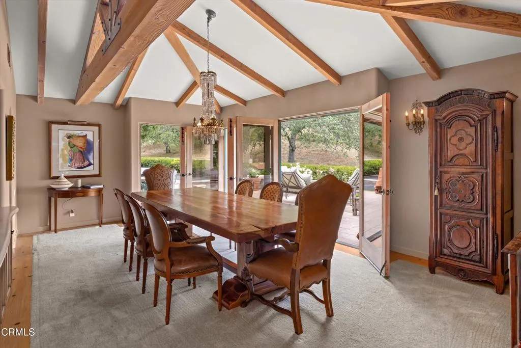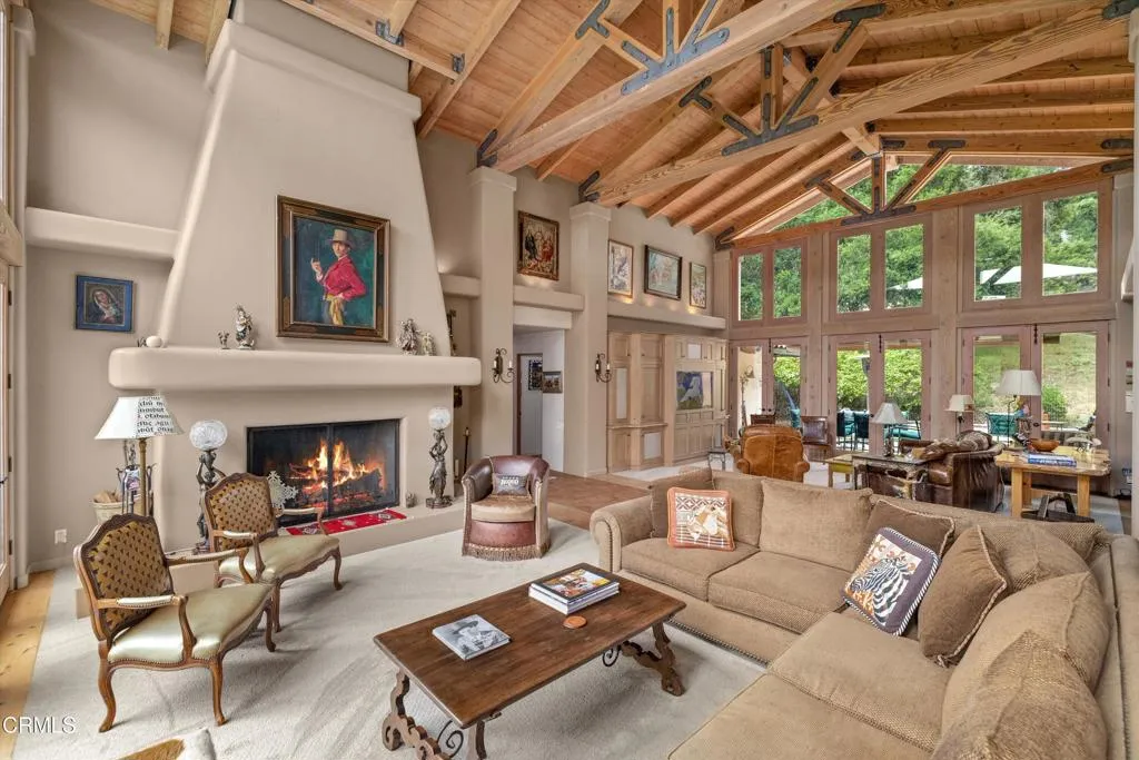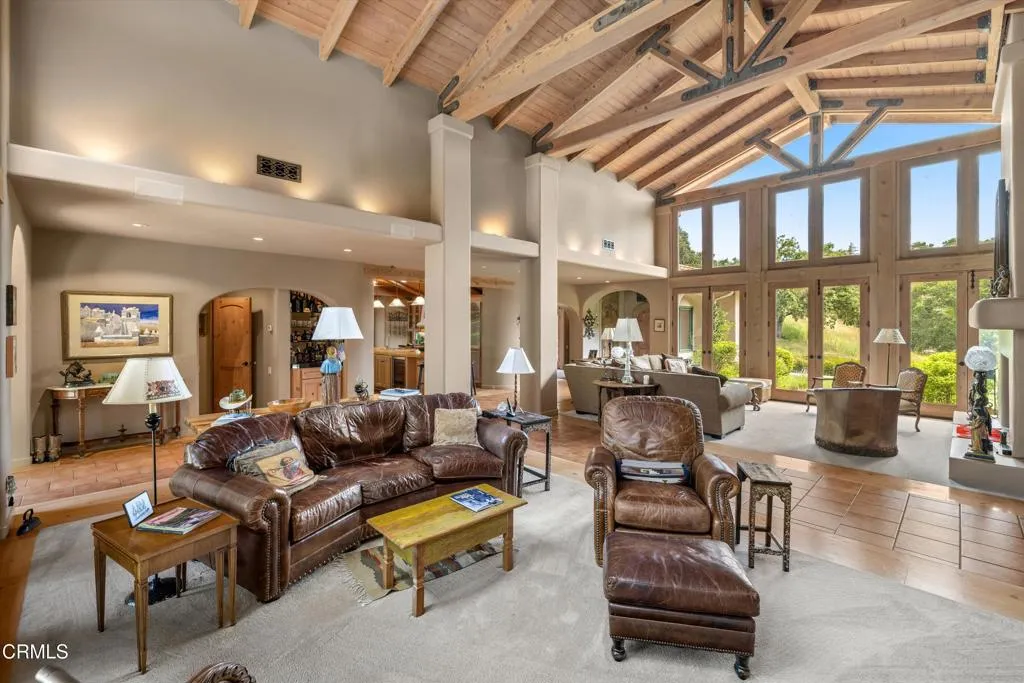 Tucked behind gates in the coveted Woodstock Ranch enclave, this exceptional Santa Ynez estate offers a rare blend of privacy, sophistication, and relaxed ranch living. Set on over 20+/- acres and surrounded by centuries-old oaks and manicured grounds, the property spans multiple thoughtfully designed structures, perfectly suited for entertaining, recreation, and retreat.At its heart is a 3,542+/- sq. ft. main residence where expansive living spaces flow seamlessly from indoors to out, ideal for everything from laid-back gatherings to elegant events. A 1,200+/- sq. ft. detached garage includes a gym and office, offering flexible space for work and wellness. The 600+/- sq. ft. cabana, with a kitchenette, bath, and lounge or sleeping area, serves as a charming guest quarters or poolside hideaway.A dramatic 2,000+/- sq. ft. party barn sets the stage for grand-scale entertaining, while a 4-stall barn with tack and storage rooms makes the property fully equipped for equestrian pursuits. Beyond the gates, residents enjoy access to miles of riding and hiking trails across Woodstock Ranch's 2,400+/- oak-dotted acres--one of the Santa Ynez Valley's most celebrated communities, known for its wide-open vistas, Mediterranean climate, and deep-rooted equestrian heritage.Just minutes from the acclaimed wineries, restaurants, and boutiques of Los Olivos and Santa Ynez, and a scenic drive to Santa Barbara's beaches, this peaceful estate captures the very essence of California ranch living.