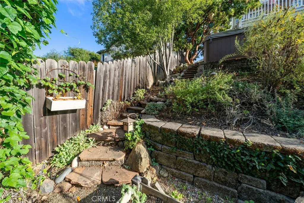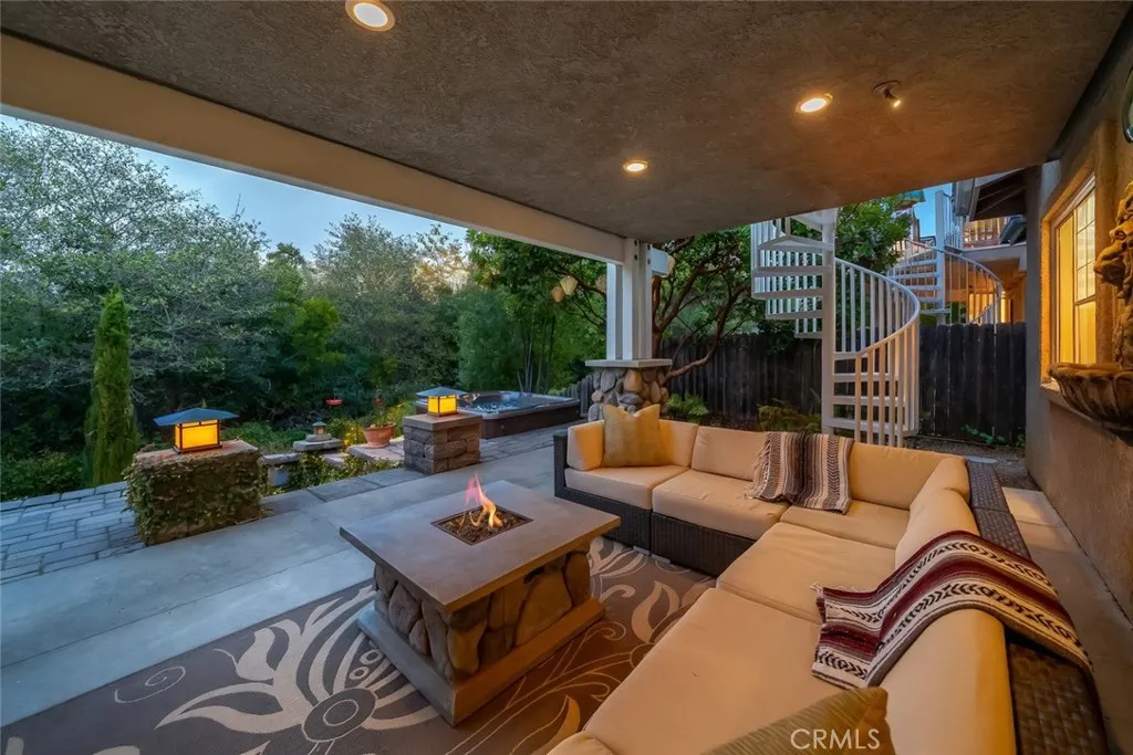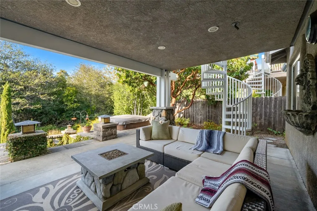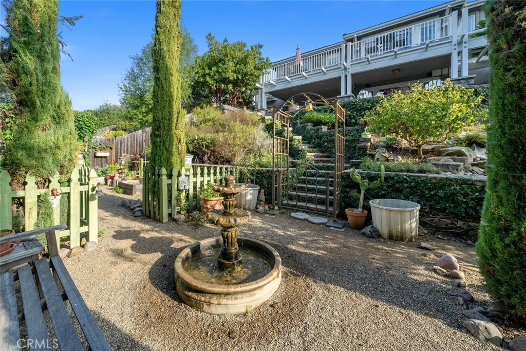 Welcome to 4451 Spanish Oaks, a beautifully maintained home nestled at the base of Islay Hill in scenic San Luis Obispo. From the moment you arrive, you'll be greeted by a charming front yard, highlighted by low-maintenance landscaping, a curved paver path, and a sitting area with tranquil views of wide-open spaces. Step inside to discover an ideal layout, featuring the primary suite, kitchen, main living area, powder room, and 2-car garage all on the entry level. Recent upgrades include fresh exterior paint and new designer flooring installed in October 2025. The light-filled living room opens to an oversized deck overlooking the serene, wooded area and backyard, creating the perfect space for relaxation, outdoor cooking, and entertaining in the Central Coast's ideal Mediterranean climate. The kitchen features ample wood cabinetry, granite countertops, a Bosch dishwasher, and a GE Profile built-in gas range, microwave, and oven. The primary suite offers a private retreat with a walk-in closet, double vanity, oversized tiled walk-in shower, and a jetted soaking tub that overlooks the property's lush greenery. Downstairs, you'll find three additional bedrooms, two full baths, a dedicated laundry room, ample storage, and a spacious family room ideal for a home theater or game area. Step out from the family room to the improved covered patio and spa area, perfect for outdoor dining and enjoying views of the backyard oasis. The sizable backyard is complete with flowering perennials, deciduous shade trees, a producing Gala apple tree, raised garden beds, an irrigation system, and a decorative tiered fountain. Located in one of San Luis Obispo's most desirable neighborhoods, this home offers access to tree-lined trails, scenic views, and access to the nearby Islay Park, which features a playground, sports courts, and a baseball field. Enjoy the perfect blend of comfort, style, and natural beauty along Spanish Oaks Drive.