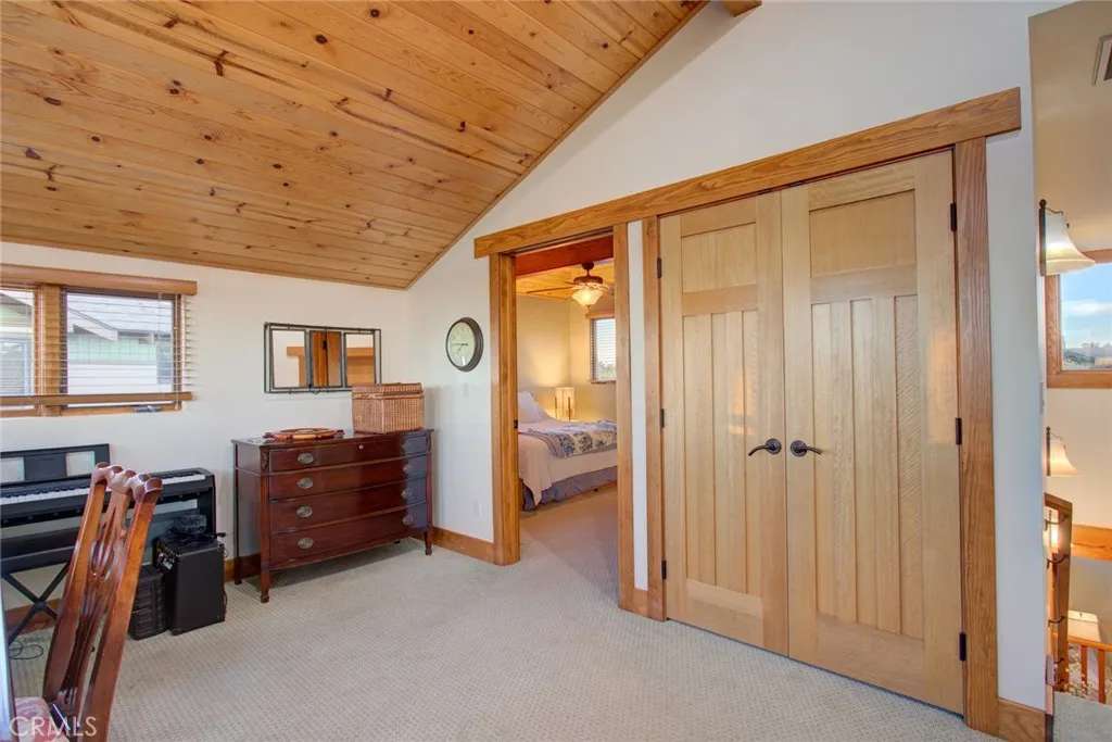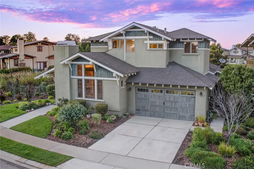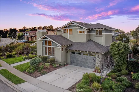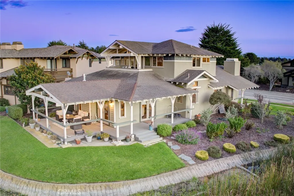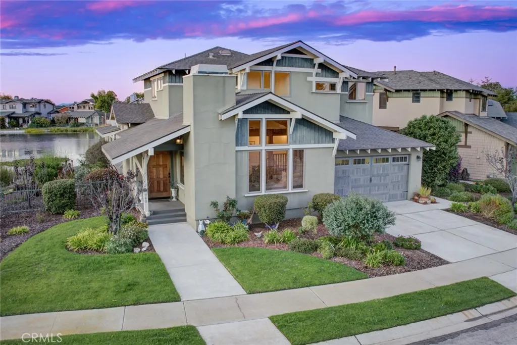 Located in the prestigious gated community of Cypress Ridge, this stunning Craftsman-style home offers true single-level living on the main floor. Set on an a corner lot with peaceful water views, it combines timeless elegance with everyday convenience just minutes from Central Coast beaches and San Luis Obispo. Thoughtfully designed for main-level living, the first floor features all essential spaces - including the spacious primary suite with patio access, a comfortable family room, a formal living and dining room with fireplace, a gourmet kitchen, the laundry room, and direct-access garage. The well-appointed kitchen boasts stainless steel appliances, granite countertops, bar seating, and a wine storage closet, making it ideal for cooking and entertaining. The upper level provides excellent flexibility with two guest suites both complete with en-suite full bathrooms, and a versatile loft, perfect for visitors, hobbies, or a home office. Vaulted pine ceilings, hardwood floors, and abundant natural light enhance the home's warm, inviting atmosphere, while the wrap-around Trex deck offers the perfect setting to enjoy coastal breeze. Located within a secure gated community, residents can join the Peter Jacobsen-designed golf course, and enjoy scenic Audubon lake, playgrounds, and walking paths - an exceptional combination of refined Craftsman design and effortless Central Coast living.