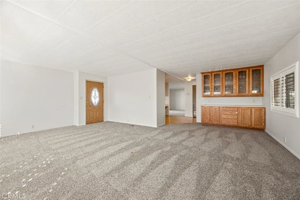 An exceptional opportunity awaits with this spacious 2-bedroom, 2-bathroom manufactured home with a huge bonus room, ideally located in a sought-after Arroyo Grande community. Situated on an approximate 1,736 sq ft lot, this property delivers generous living space and a prime chance for personalization. The bright interior features an open floor plan with expansive living areas, including a sizable living room and a separate family room. Both spaces are finished with neutral paint, plush carpeting, and are illuminated by large windows fitted with classic shutters, ensuring a cheerful and inviting atmosphere. The well-appointed kitchen is defined by classic wood cabinetry offering significant storage, and it flows seamlessly into the dedicated dining area, which boasts an attractive built-in hutch with glass display frontsperfect for entertaining. The two bedrooms are roomy and comfortable. The primary suite features elegant gold-framed mirrored closet doors and a private en-suite bathroom with a classic enclosed shower. The second full bathroom is equally functional, offering extended vanity space and cabinet storage. The bonus room could be used as a bedroom since it has an oversized closet. The homes exterior is complemented by beautiful landscaping, a paver-stone walkway, and steps leading up to a covered, sheltered porch ideal for enjoying the mild climate. Convenient covered carport parking is also included. Combining location, size, and potential - this home is ready for its next chapter ... as your new home!